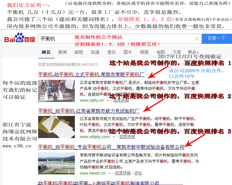 平衡機(jī) : 2018-05-23上線 2018-06-08排名第5頁 2018-07-01排名第30名 2018-08-15排名第11名 2018-08-26排名第7名 (注:平衡機(jī)一臺需要幾萬到10多萬元, 是難排名的關(guān)鍵詞,百度重點關(guān)照,因百度推廣的話,大概要60元一點擊)